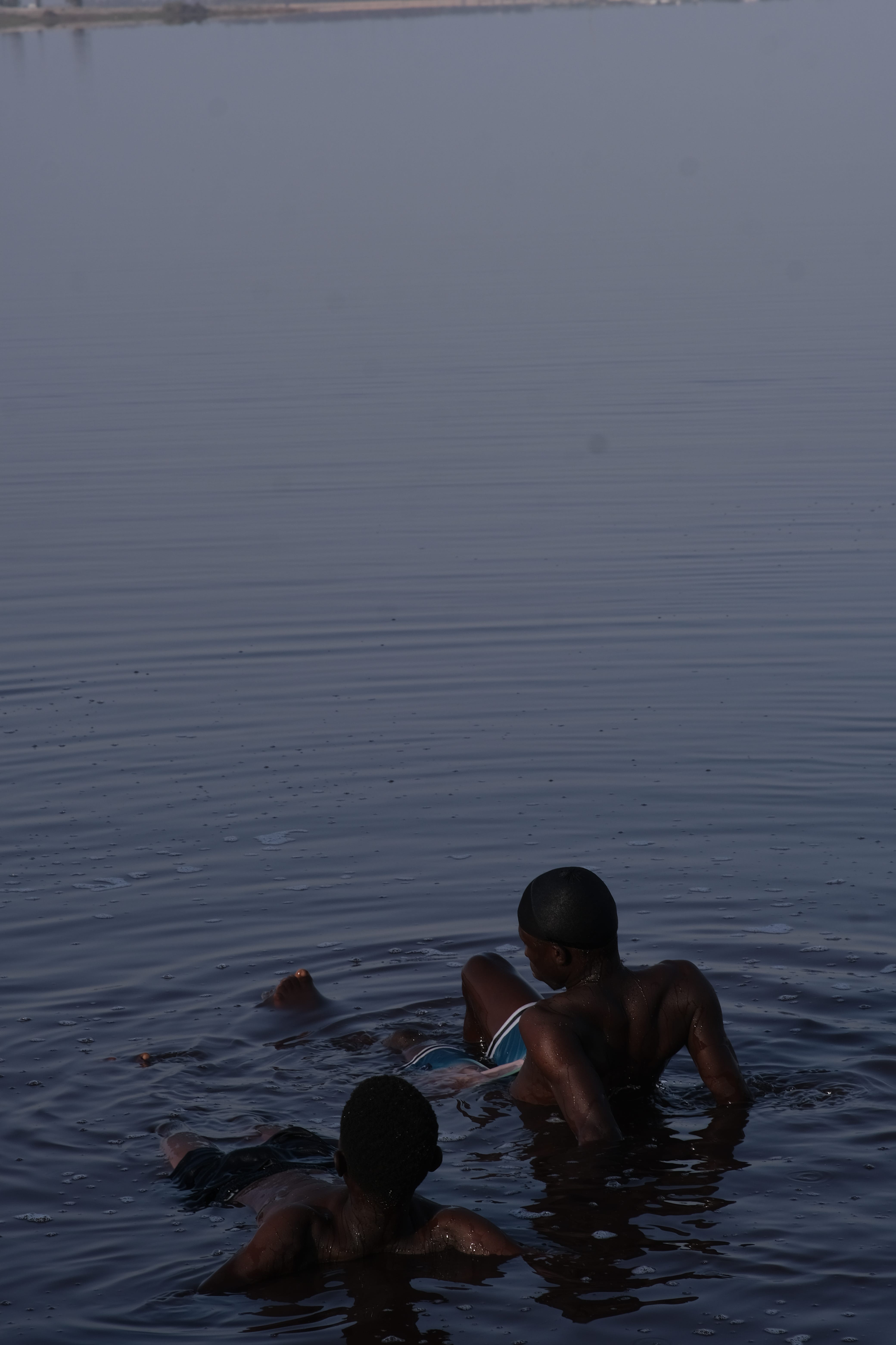 there is a photograph of two boys, their bodies partly submerged in water. backs to us they assume similar poses and appear to move in tandem. the subtle ripples that extend from their bodies, gradually fading out into the horizon seem a testament to this. one figure is shown slightly elevated than the other and the angle of their heads fix their gazes at different points, yet there is a uniformity to the image, an ease that comes from familiarity. Emmanuel Iduma writes about a visually similar image, ‘Here is the possibility of comradeship, clear to anyone who has known a friendship so unpretentious it can be seen from the back’. i often think about the various forms tenderness comes in; in the cradling of bodies or the intimate attuning of distinct minds, a fleeting gesture or an enduring moment, a photograph taken or a story shared. in this photograph, i see it in the movement between bodies reverberating across the expanse.